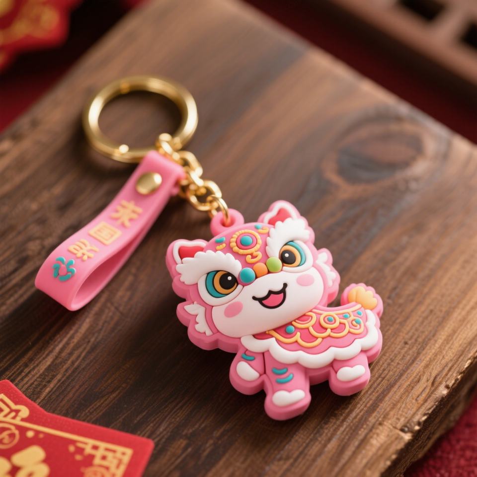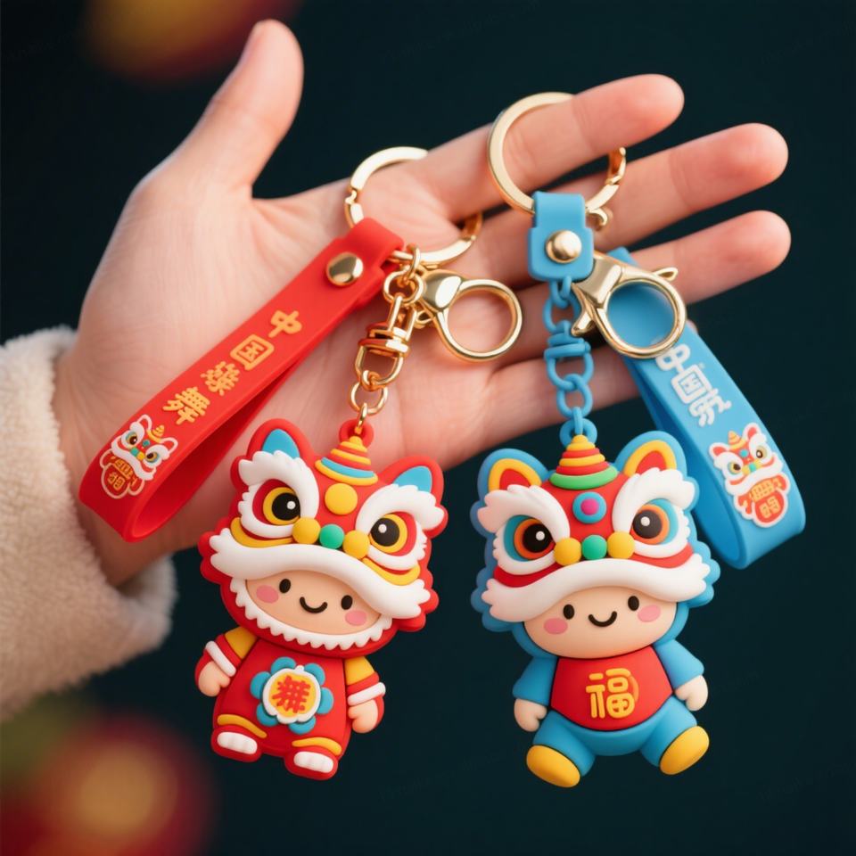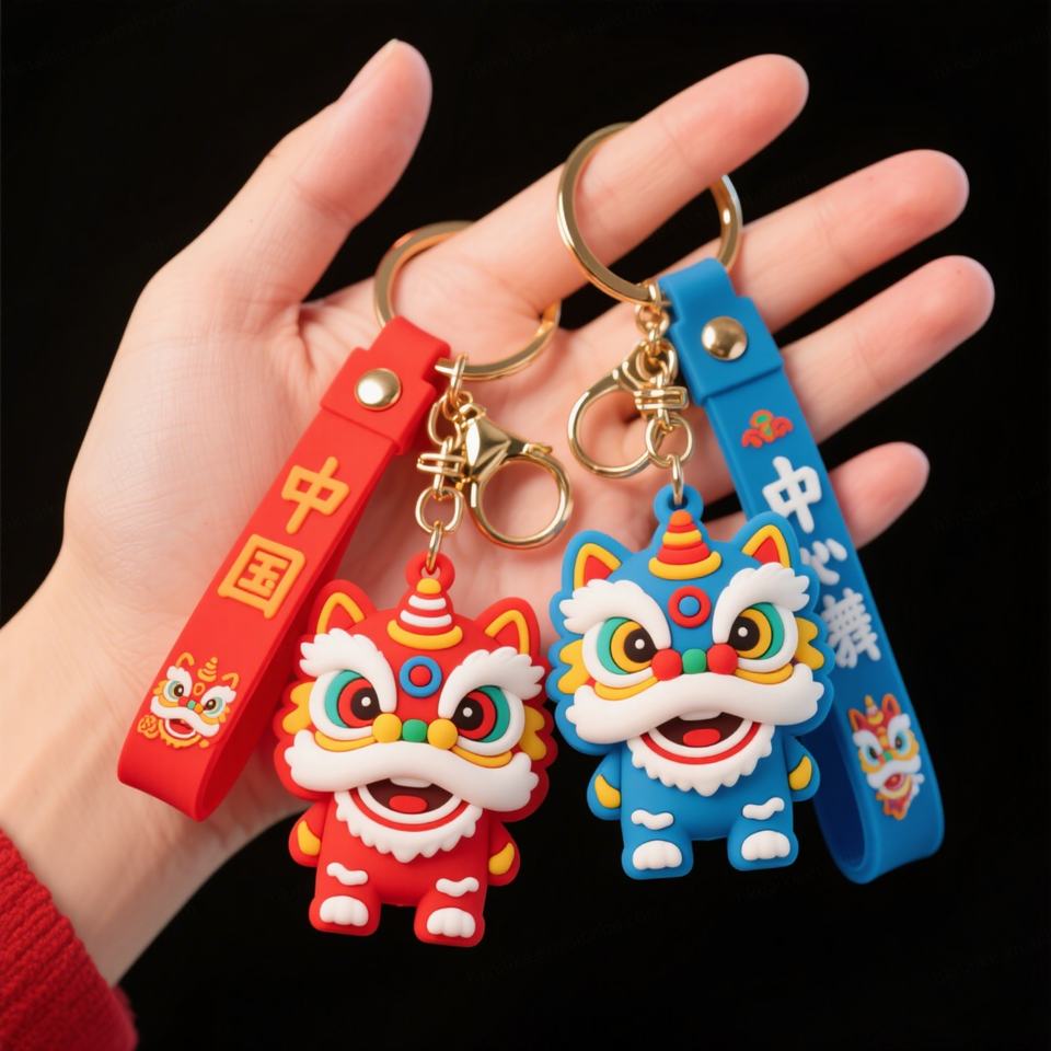 พวงกุญแจ PVC อ่อนนุ่มรูปมังกรและสิงโตเต้นรำแบบ 3 มิติ พร้อมจี้รูปการ์ตูน วัสดุโลหะและยางพลาสติกผสมอัลลอย