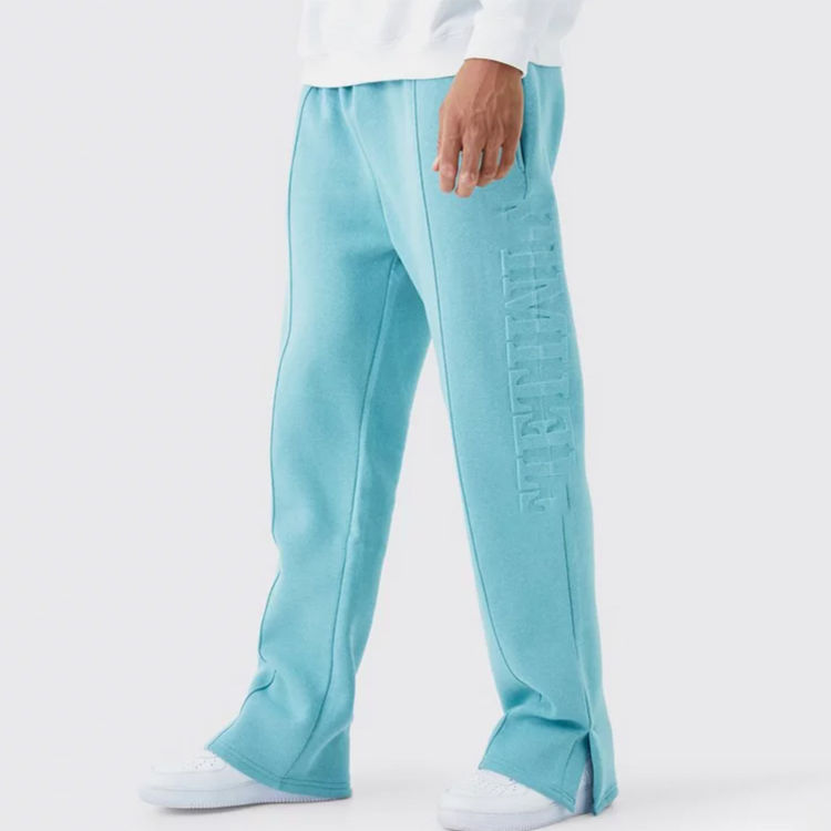 กางเกงจ็อกเกอร์ผู้ชายคุณภาพสูง 100% พร้อมโลโก้ 3 มิติแบบนูน กางเกงวอร์มทรงขาบานผ้าเฟรนช์เทอร์รี่แบบยืดหยุ่นสำหรับผู้ชาย