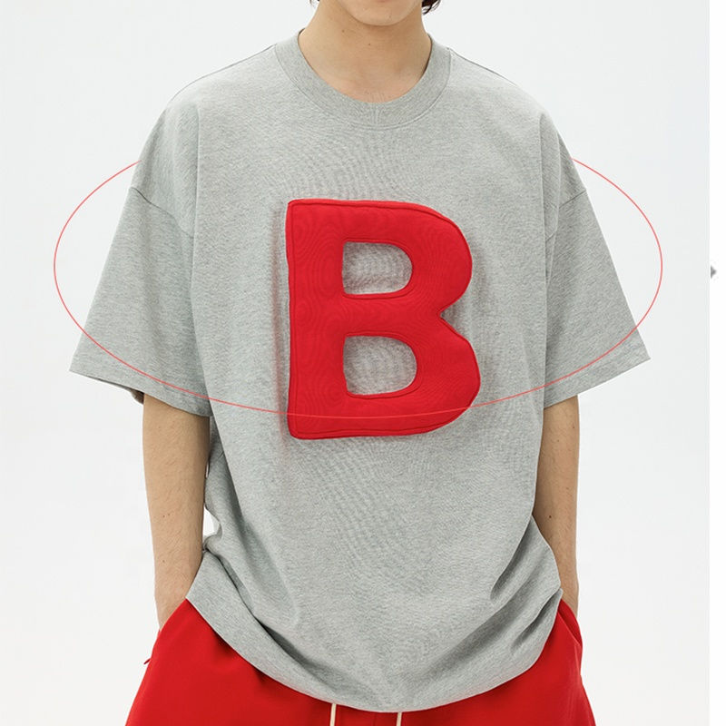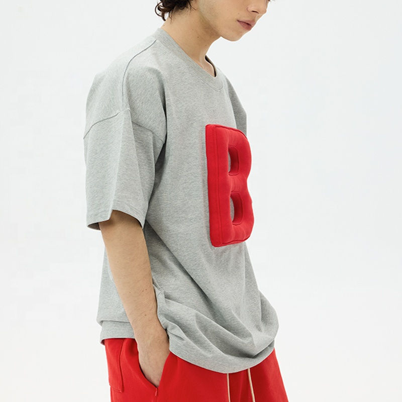 เสื้อยืด 3 มิติ ลายนูนแบบกำหนดเองสำหรับผู้ชาย ทรงโอเวอร์ไซส์ ไหล่ตก เสื้อยืดดีไซน์เนอร์สตรีทแวร์ เสื้อยืดแฟชั่นผ้าฝ้าย ขายส่ง