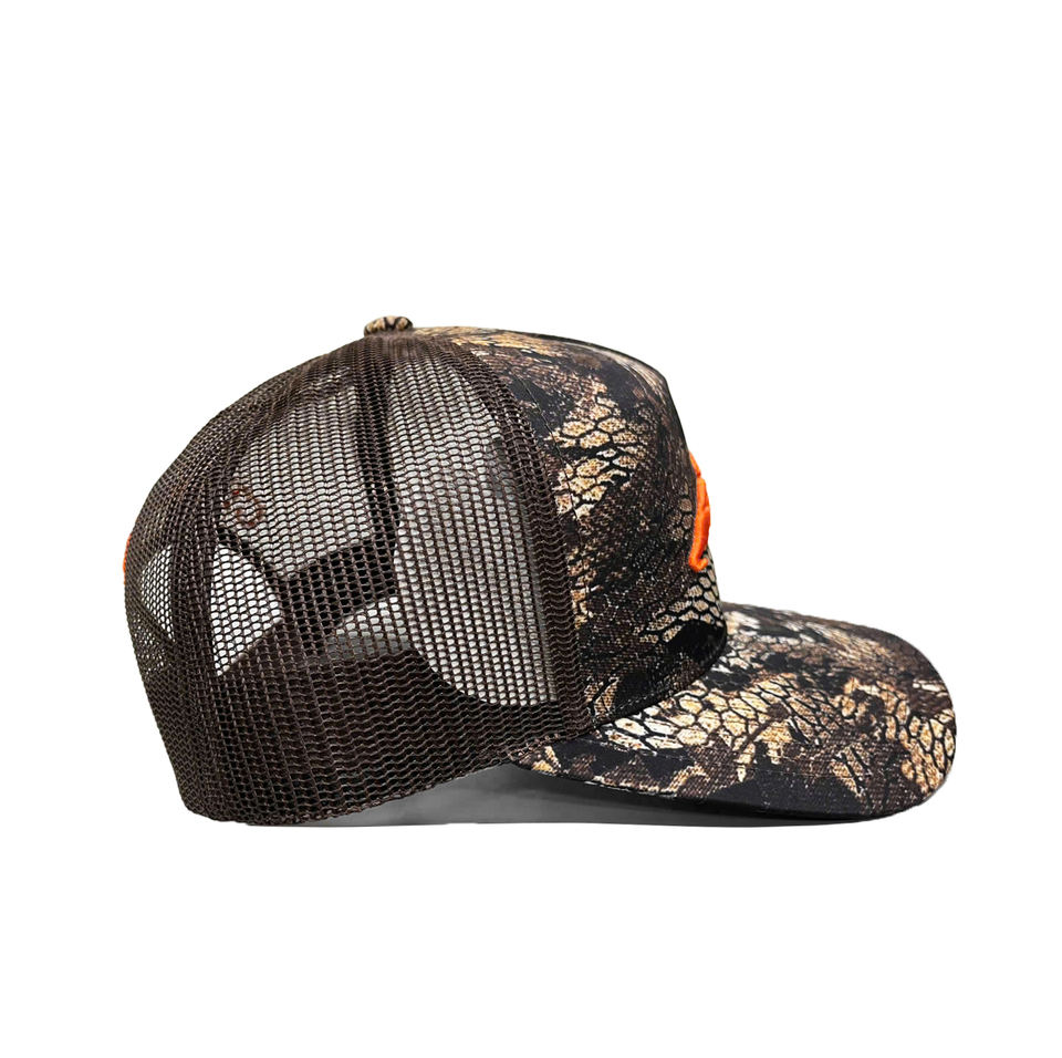 หมวกทรักเกอร์ปักโลโก้แบบปรับได้3D 5แผงด้านหลังตาข่ายรายละเอียดสูงทันสมัยสำหรับใช้งานกลางแจ้งแบบลำลอง