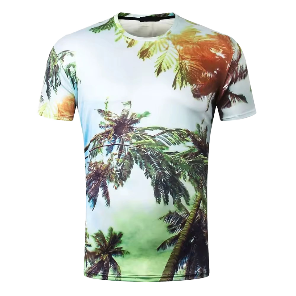 เสื้อยืดพิมพ์ลาย 3 มิติ แบบซับลิเมชั่นเต็มตัว ลายต้นปาล์มเขตร้อน สำหรับผู้ชาย เสื้อผ้าชายหาดฤดูร้อน ระบายอากาศได้ดี แห้งเร็ว
