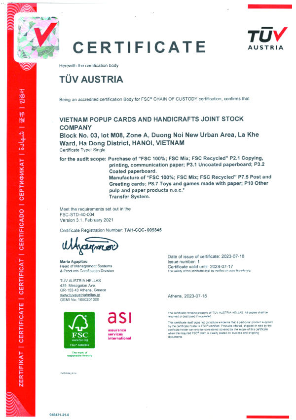 การ์ดอวยพร 3 มิติแบบกำหนดเองพร้อมซองจดหมายสำหรับวันวาเลนไทน์ ผลิตในเวียดนามจากผู้ผลิต HMG