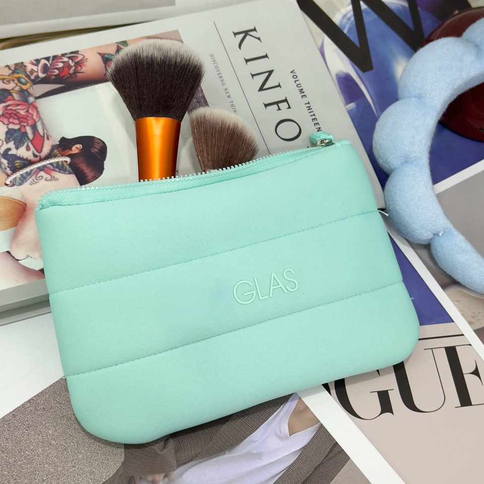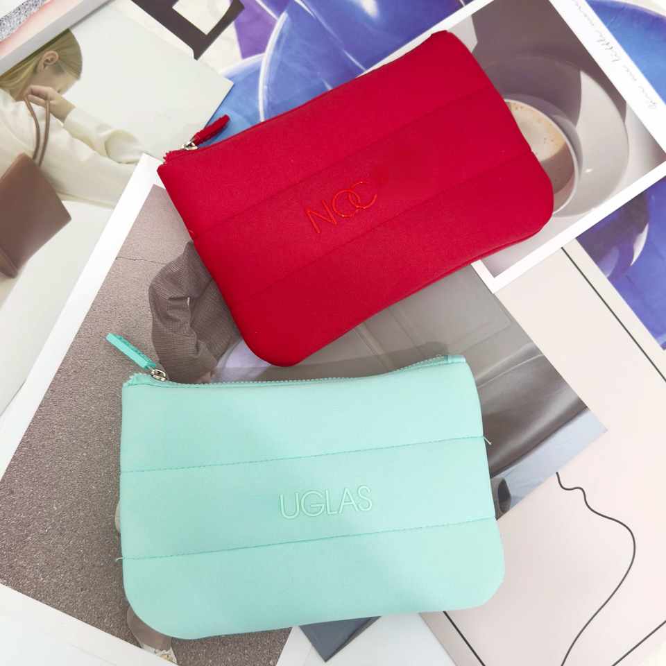 กระเป๋าเครื่องสำอางแบบนีโอพรีนลายควิลท์พร้อมโลโก้ 3 มิติแบบกำหนดเอง กระเป๋าแต่งหน้ากันน้ำแบบพอง กระเป๋าใส่เครื่องสำอางแบบฟองอากาศ กระเป๋าเก็บผลิตภัณฑ์ดูแลผิว กระเป๋าใส่อุปกรณ์อาบน้ำ