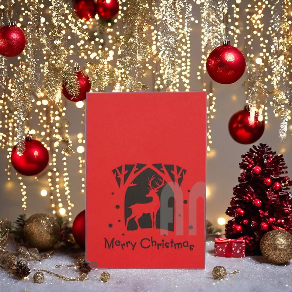 การ์ดอวยพรจากกระดาษคุณภาพสูงงาน3D ออกแบบลายกวางป่าคริสต์มาสแบบแฮนด์เมดสไตล์เวียดนามยอดนิยมออกแบบได้ตามต้องการ
