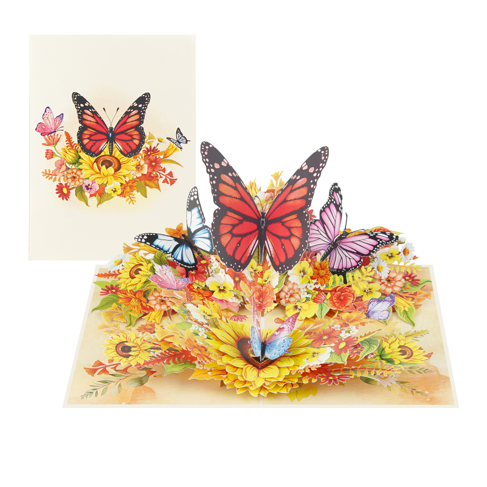 โรงงานผลิตการ์ดกระดาษป๊อปอัพ 3 มิติ ลายสวนดอกไม้ผีเสื้อฤดูใบไม้ร่วง สำหรับตลาดของขวัญ