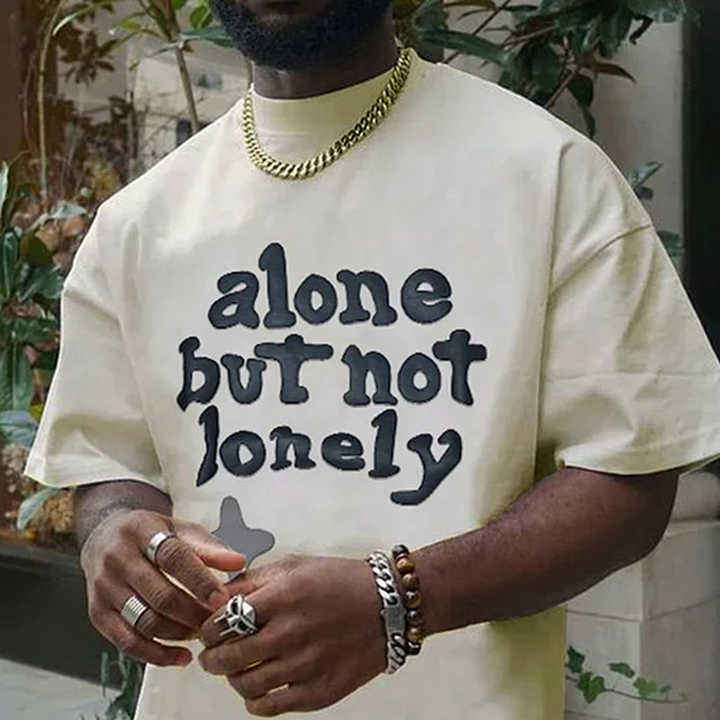 เสื้อยืดผู้ชายแขนสั้นลำลองพิมพ์ลายพัฟผง3D ออกแบบได้ตามต้องการเสื้อโลโก้แบบกำหนดเอง