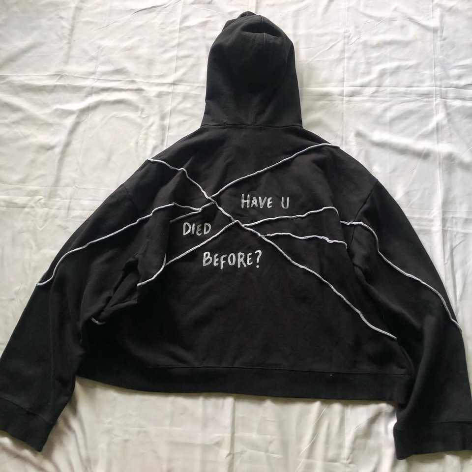 เสื้อสเวตเตอร์ขนแกะขนาดใหญ่พิเศษเสื้อมีฮู้ดแบบสวมหัวมีกระเป๋าลายกรดสีสันสดใสพิมพ์ลาย3D ตามสั่ง