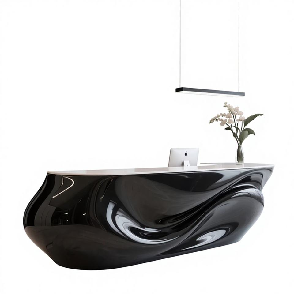 เคาน์เตอร์ต้อนรับทันสมัยแบบพิมพ์ 3 มิติ ชิ้นเดียว ดีไซน์โค้งมน สำหรับสำนักงาน อาคาร โรงแรม ห้างสรรพสินค้า ล็อบบี้