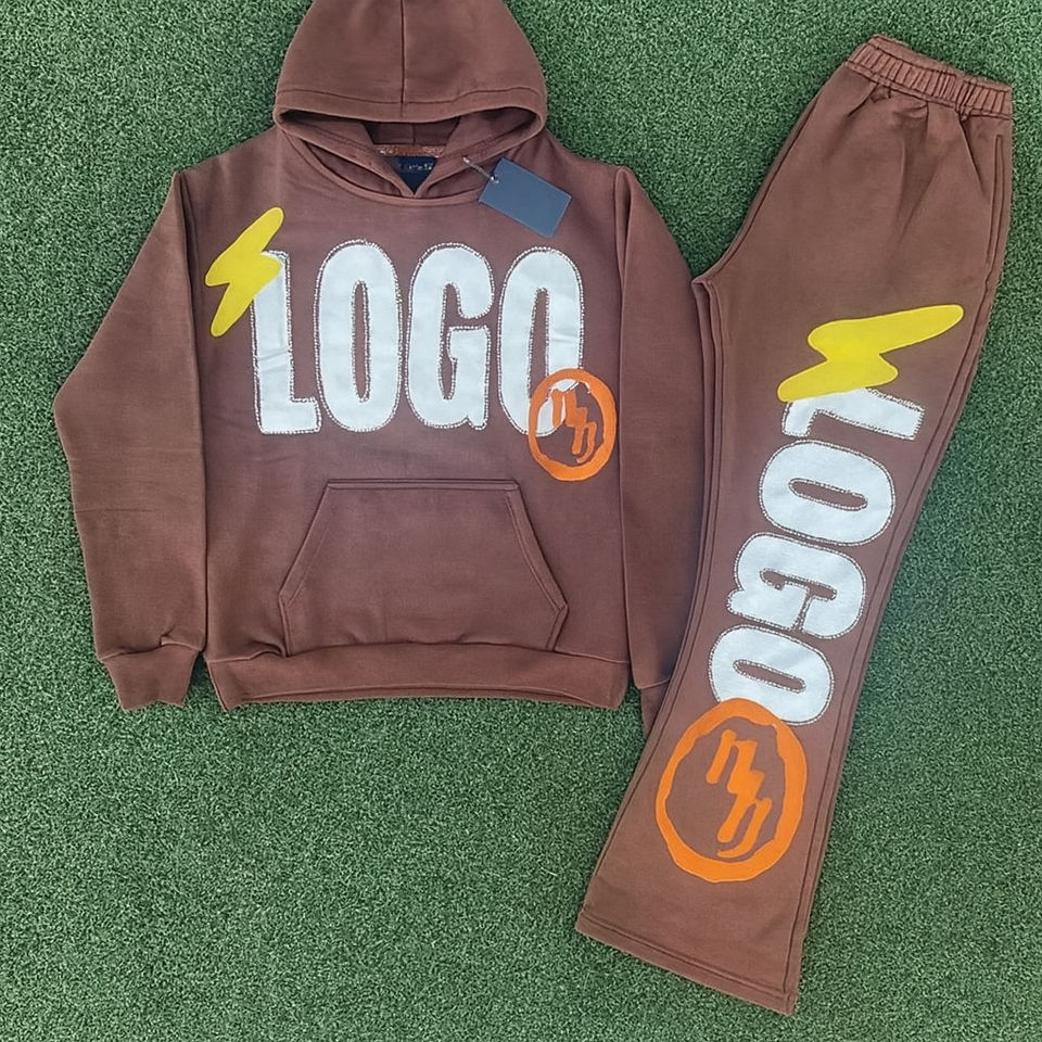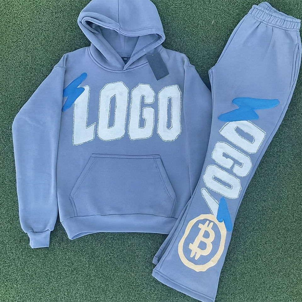 ชุดวอร์มพิมพ์ลายพัฟสำหรับ3D ชุดวอร์มผ้าฝ้ายขนแกะชุดวอร์มทรงโอเวอร์ไซส์แบบลำลองและเรียบง่ายกางเกงวอร์มกางเกงขาบานและเซ็ทมีฮู้ด