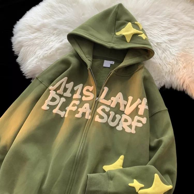 เสื้อฮู้ดผู้ชายซิปเต็มตัวพิมพ์ลาย3D พัฟแบบกำหนดเองเสื้อถักไซส์ใหญ่พิเศษมีฮู้ดแบบไม่มีเชือก