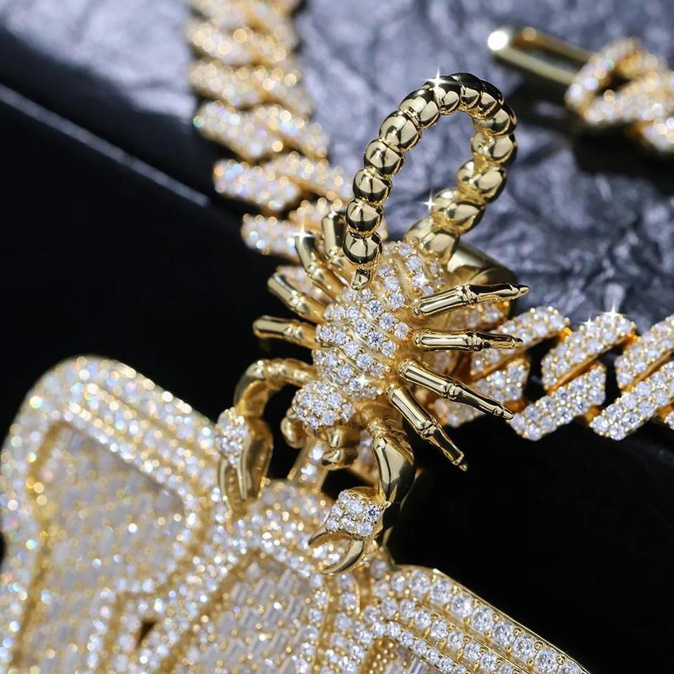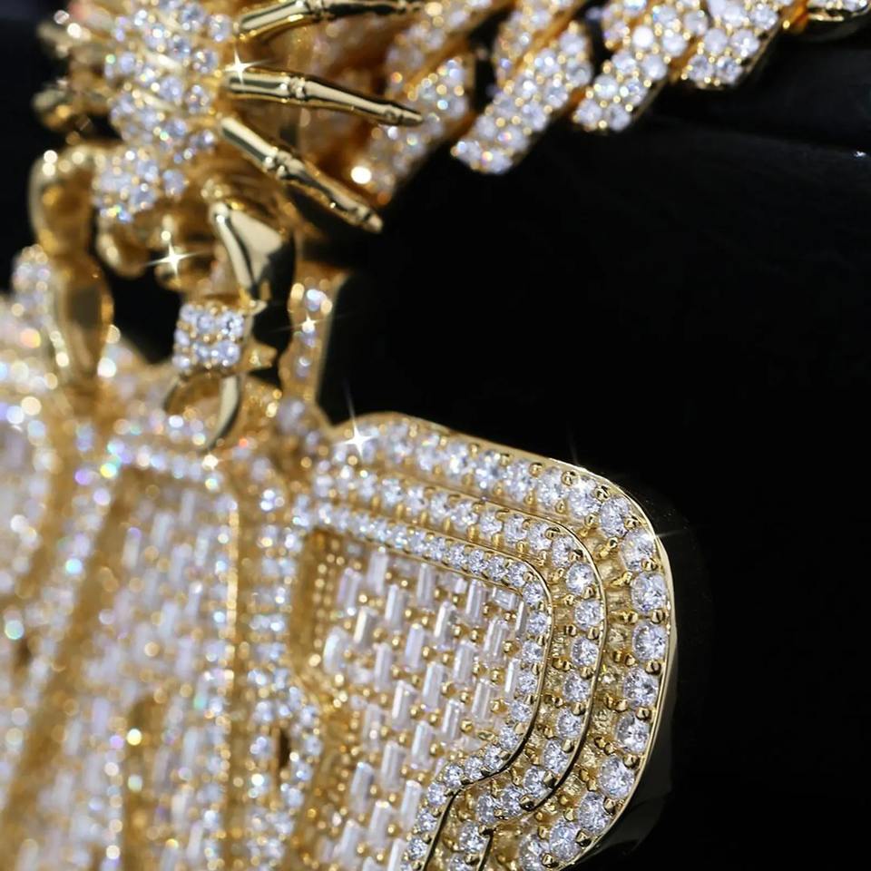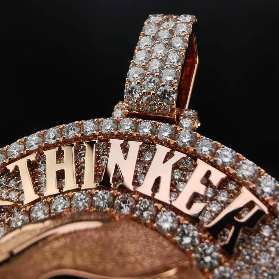 จี้การ์ตูนรูปสัตว์ตัว V 3D กำหนดเองได้เครื่องทดสอบเพชรแบบผ่านเพชรแบบ Viced Moissanite สไตล์ฮิปฮอปโรสโกลด์สีเงินสำหรับผู้ชายชุบโรเดียม