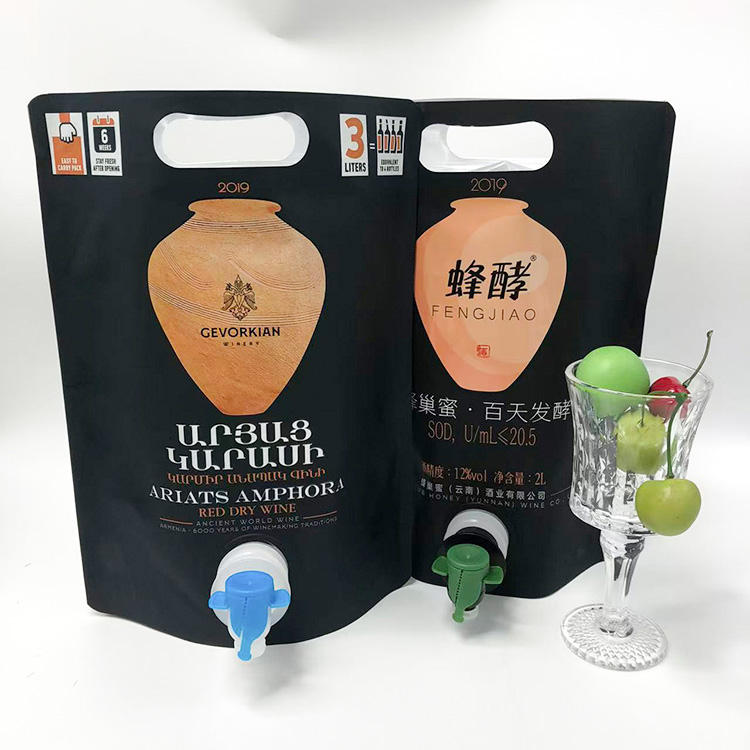 ถุงอลูมิเนียมพิมพ์ลายตามสั่ง ขนาด 3 ลิตร แบบปิดผนึกได้ พร้อมวาล์วและฐานสองชั้น สำหรับบรรจุผลไม้ ของเหลว นม ไวน์