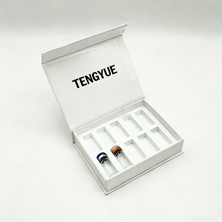 กล่องบรรจุภัณฑ์แบบแม่เหล็กสำหรับขวดแอมพูลเปปไทด์ ขนาด 3 มล. 5 มล. 10 มล. บรรจุ 10 ขวด กล่องของขวัญสำหรับขวดเปปไทด์