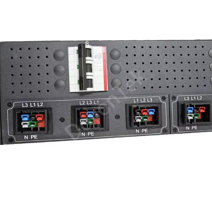 PDU แบบกำหนดเอง 3 เฟส 24 ช่องเสียบโลหะ P34 PA45 พร้อมเบรกเกอร์ 8 ตัว 250A สำหรับตู้แร็คเซิร์ฟเวอร์