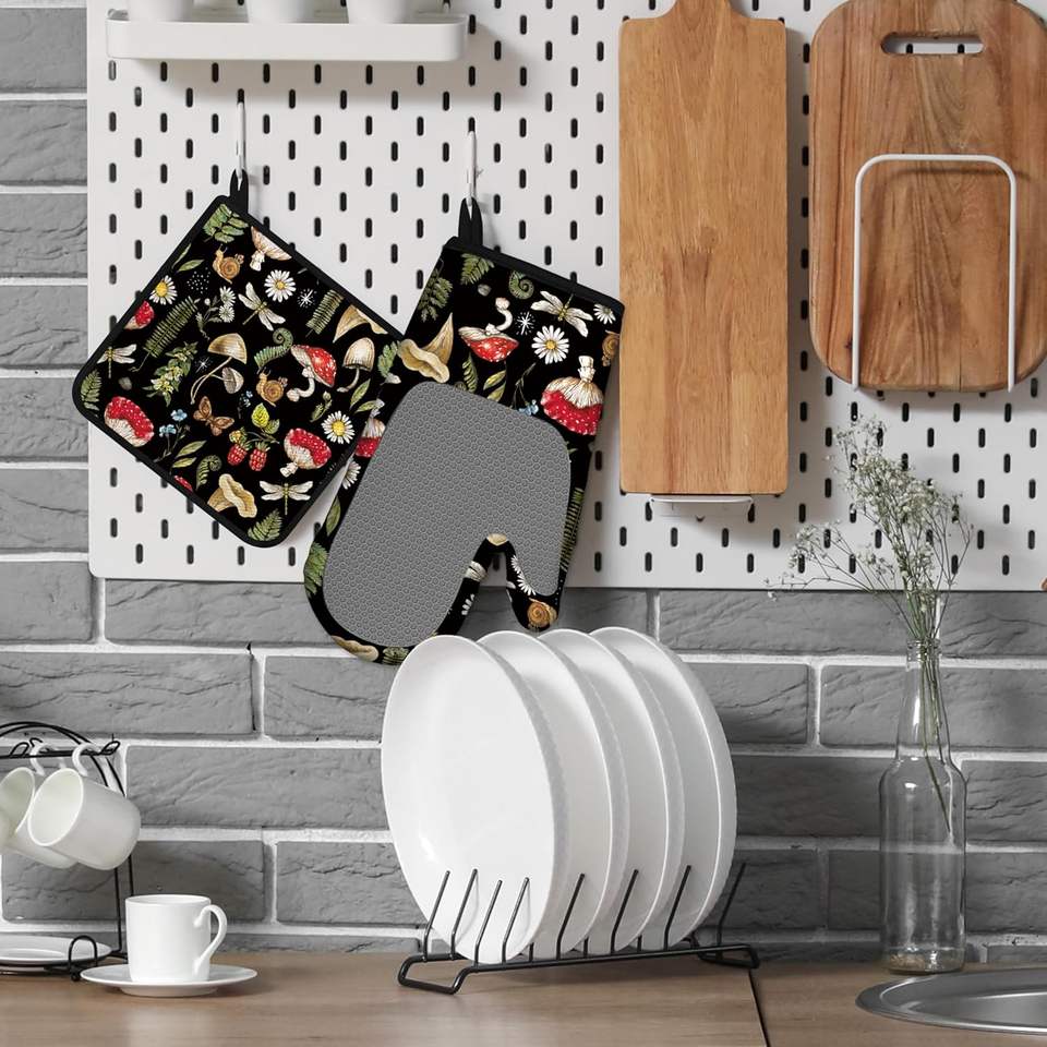 ชุดถุงมือกันความร้อนซิลิโคน 4 ชิ้น แบบกำหนดเอง พร้อมแผ่นรองกันลื่นสำหรับครัว ทำจากจีน