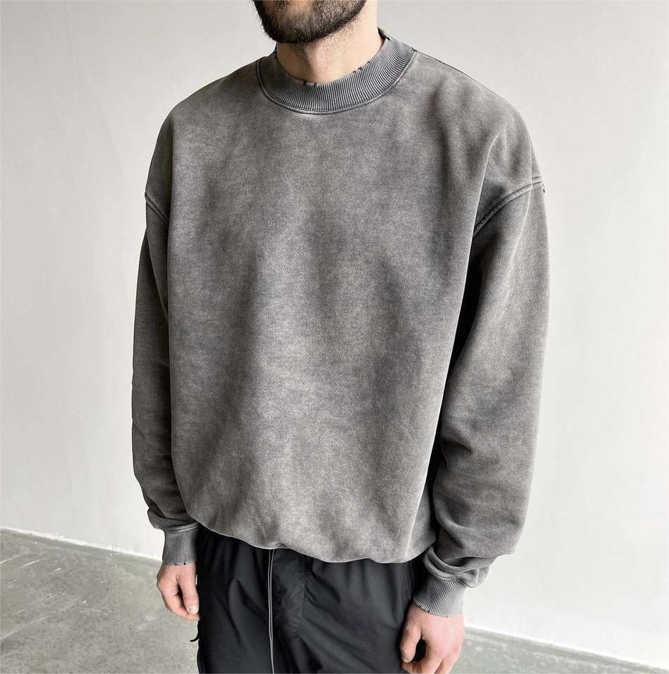 เสื้อสเวตเตอร์ & เสื้อมีฮู้ดผ้าฟลีซคอลูกเรือไซส์ใหญ่พิเศษแนวสตรีทแบบวินเทจ400กรัมออกแบบได้ตามต้องการ