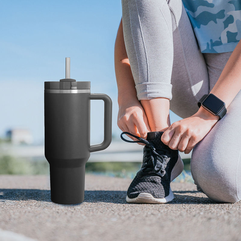 กระบอกน้ำสแตนเลสแบบกำหนดเองขนาด 40 ออนซ์ สำหรับออกกำลังกาย กระบอกน้ำเก็บความร้อนสุญญากาศ พร้อมหูจับและหลอดดูดแบบแก้วน้ำ
