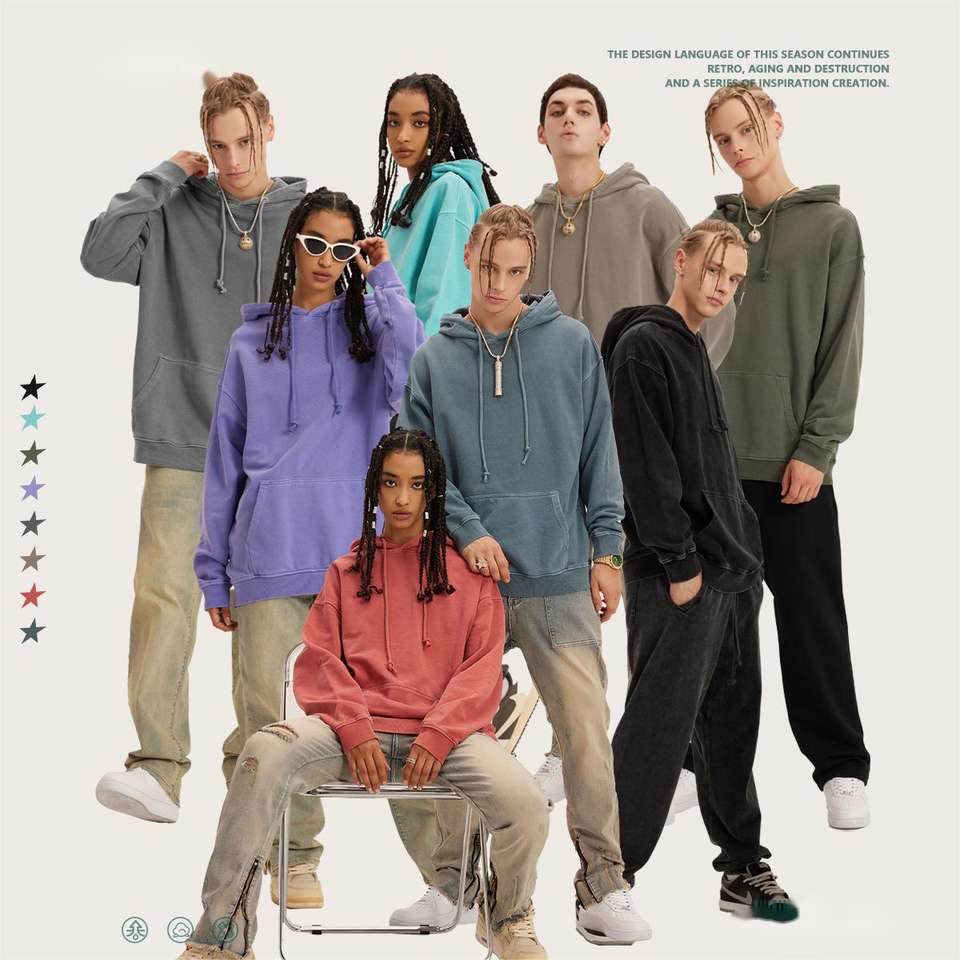 เสื้อมีฮู้ดแบบสวมหัวมีฮู้ดโอเวอร์ไซส์ผ้าฝ้าย100% ซักได้420กรัมวินเทจปกมีฮู้ดออกแบบสำหรับผู้ชายและผู้หญิง