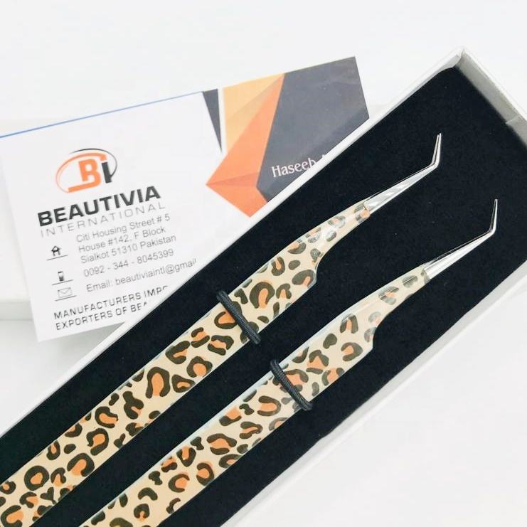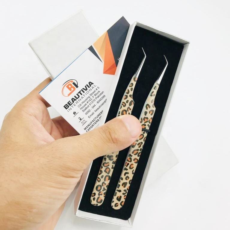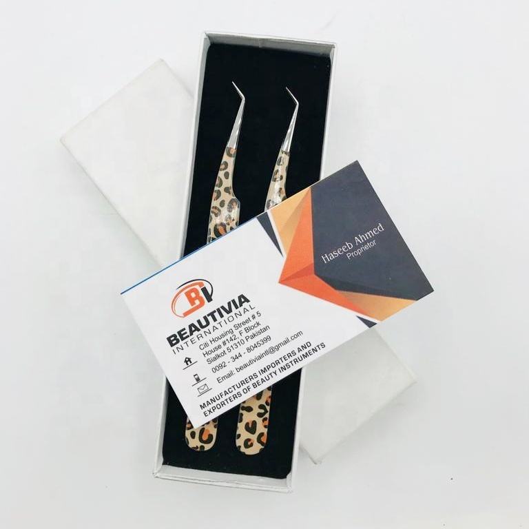 แหนบต่อขนตาเคลือบกระดาษ45องศาทำจากสเตนเลสปลายแหลมพร้อมโลโก้ออกแบบได้ตามต้องการสำหรับการใช้ขนตา