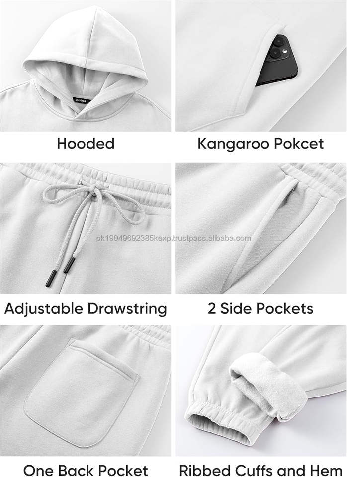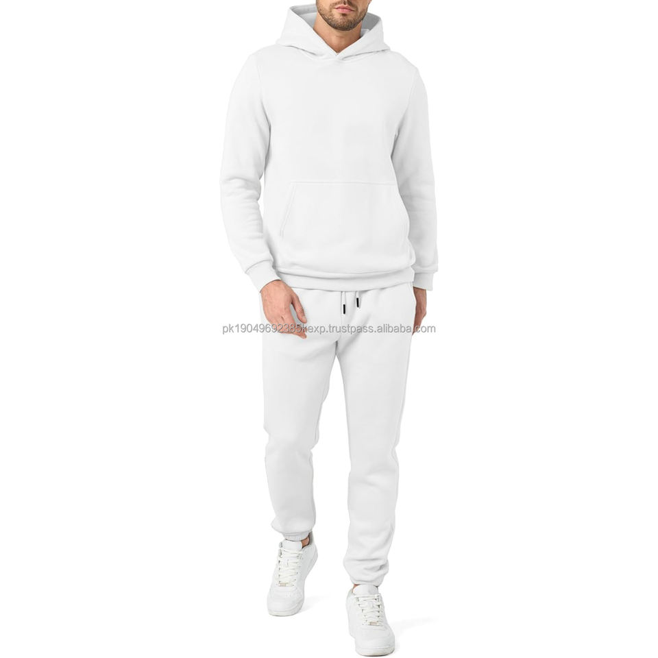ชุดวอร์มผ้าฝ้ายเนื้อนุ่มสีเขียวมะกอก 450GSM สำหรับงานพิมพ์พัฟ แบบมีฮู้ดและกางเกงขายาว ลายเรียบ สำหรับผู้ชาย ใส่ได้ในฤดูหนาว