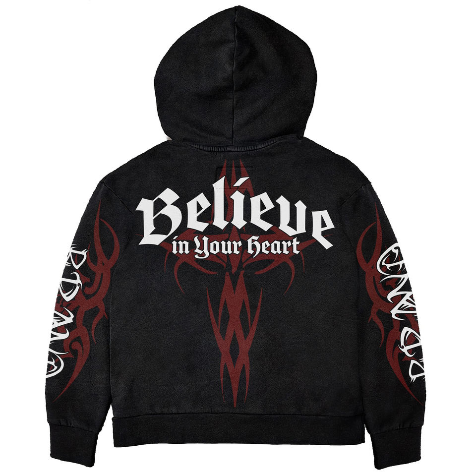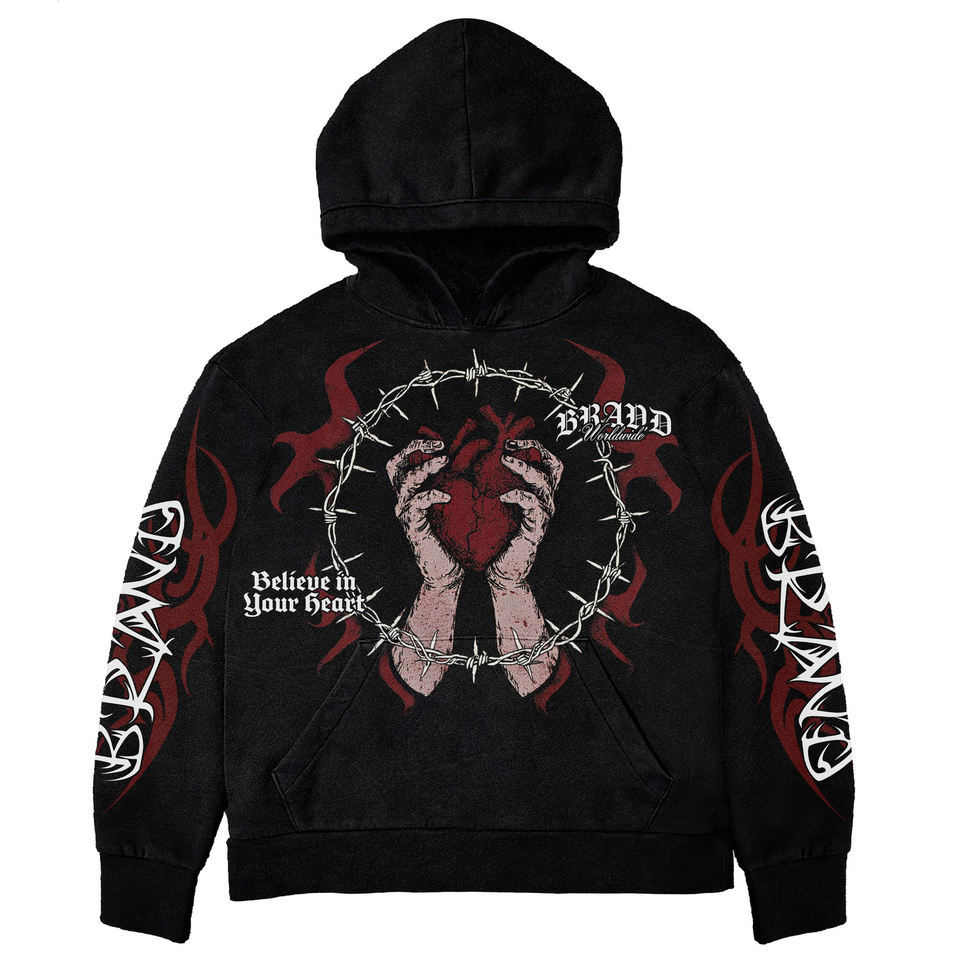เสื้อฮู้ดดี้ผ้าฝ้ายเฟรนช์ฟลีซ 460gsm แบบสั่งทำพิเศษ พิมพ์ลาย 3 มิติ สไตล์วินเทจ ทรงโอเวอร์ไซส์ ล้างสีแบบแอซิดวอช ทรงบ็อกซี่ ตัดสั้น ไซส์ XL ประดับด้วยคริสตัล