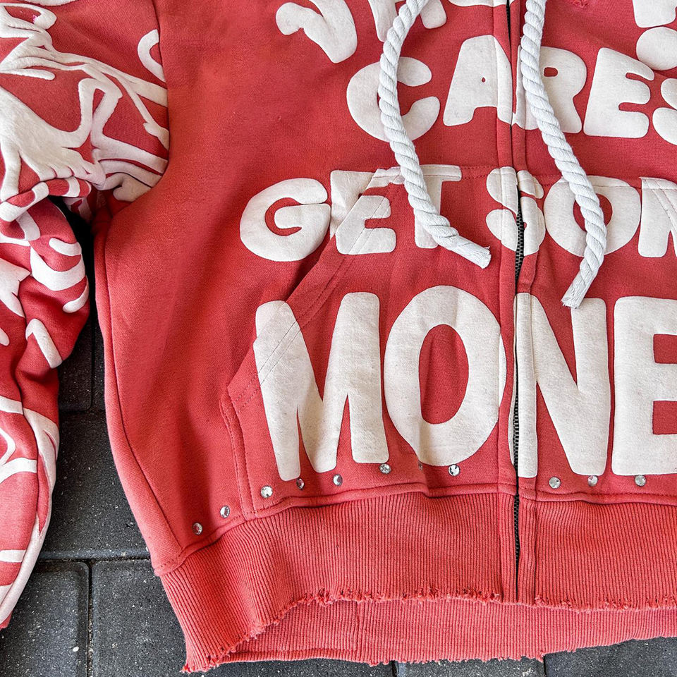 เสื้อฮู้ดดี้ผ้าฝ้ายเฟรนช์ฟลีซ 460gsm แบบสั่งทำพิเศษ พิมพ์ลาย 3 มิติ สไตล์วินเทจ ทรงโอเวอร์ไซส์ ล้างสีแบบแอซิด ทรงบ็อกซี่ ครอป ไซส์ XL ประดับด้วยคริสตัล