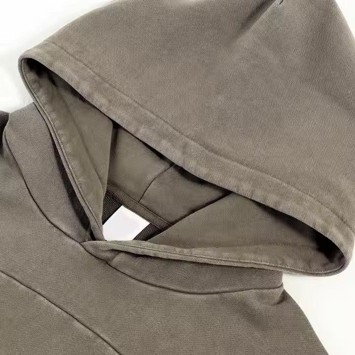 เสื้อฮู้ดดี้ทรงบ็อกซี่สไตล์วินเทจปักลาย 465GSM ผ้าฝ้าย 100% เนื้อหนัก ฟอกสีแบบดิสเทรส ผ้าเฟรนช์เทอร์รี่