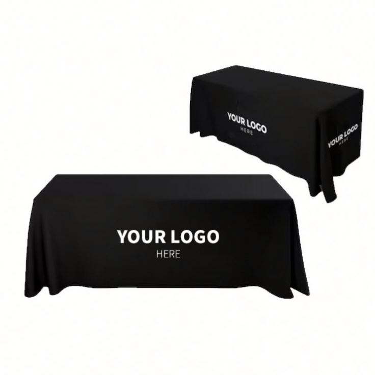 ผ้าคลุมโต๊ะงานแสดงสินค้าขนาด 4 ฟุต 6 ฟุต 8 ฟุต พิมพ์โลโก้ ผ้าปูโต๊ะแบบแบนเนอร์สำหรับโฆษณา