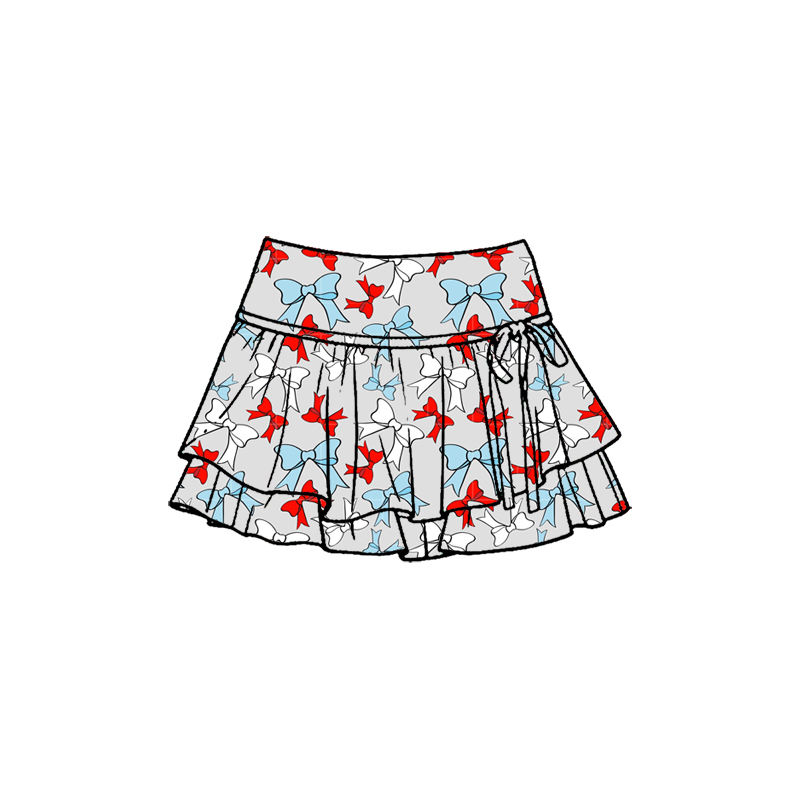 กระโปรงกางเกงขาสั้นลายธงชาติอเมริกาสำหรับเด็กผู้หญิง วันชาติอเมริกา 4 กรกฎาคม ผ้าสแปนเด็กซ์/โพลีเอสเตอร์ แห้งเร็ว เหมาะสำหรับเล่นโยคะ เล่นเทนนิส หรือใส่ลำลอง