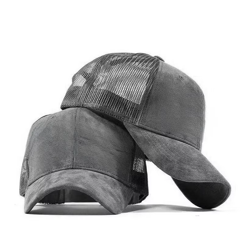 หมวกแก๊ปตาข่ายปักลาย 3 มิติ 5 ชิ้นส่วน แบบกำหนดเอง หมวกแก๊ปทรง Trucker ผ้าสuede ปักโลโก้ หมวกทรงสปอร์ตสำหรับคุณพ่อ พิมพ์ลาย