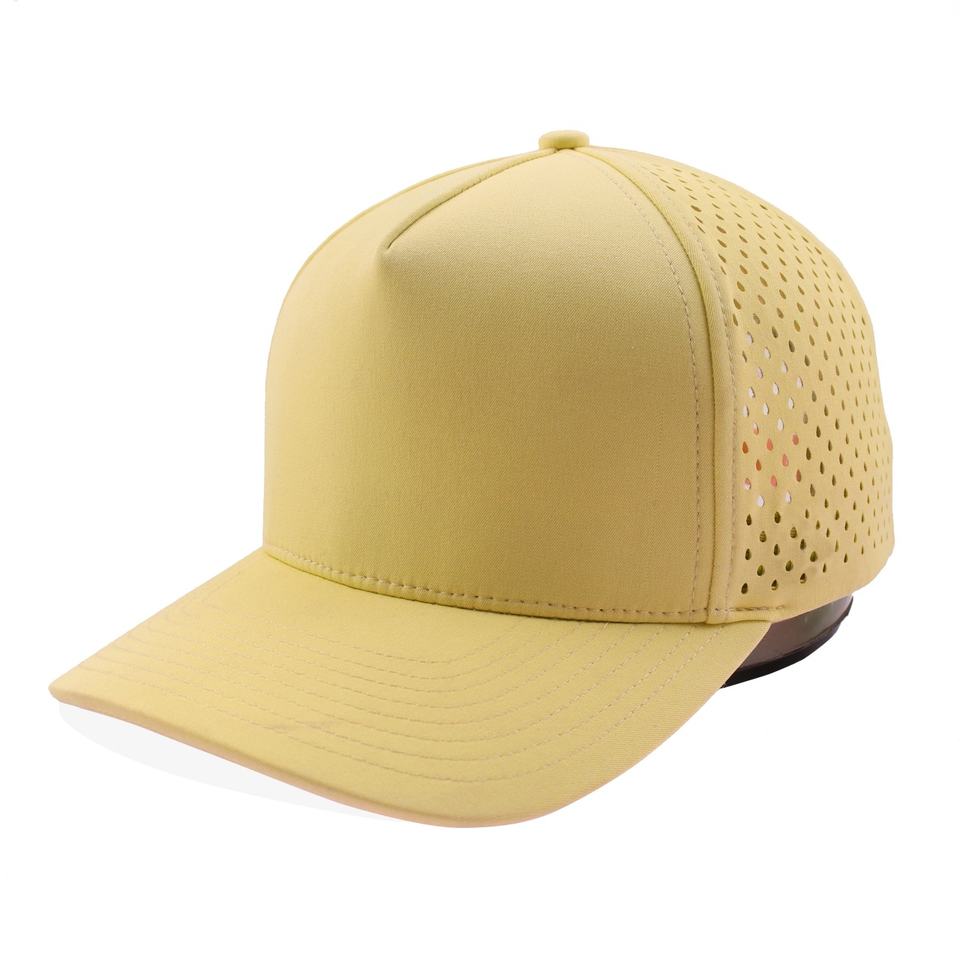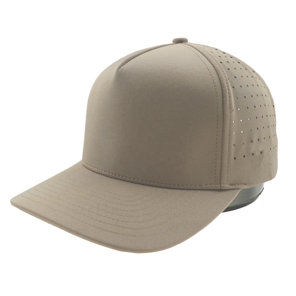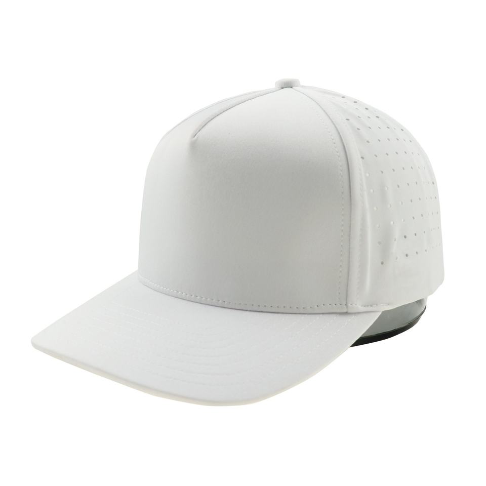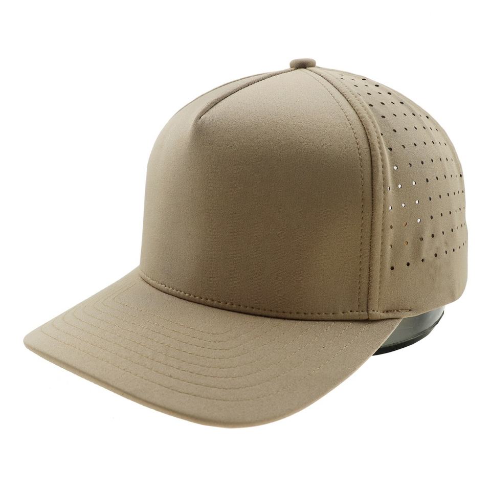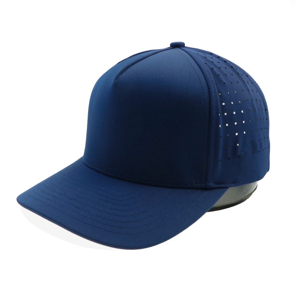 หมวกเบสบอลแบบ 5 แผงสั่งทำพิเศษ พร้อมแผ่นยางติด รูเจาะด้วยเลเซอร์ หมวกโพลีเอสเตอร์แบบมีรูระบายอากาศ หมวกแบบ Snapback