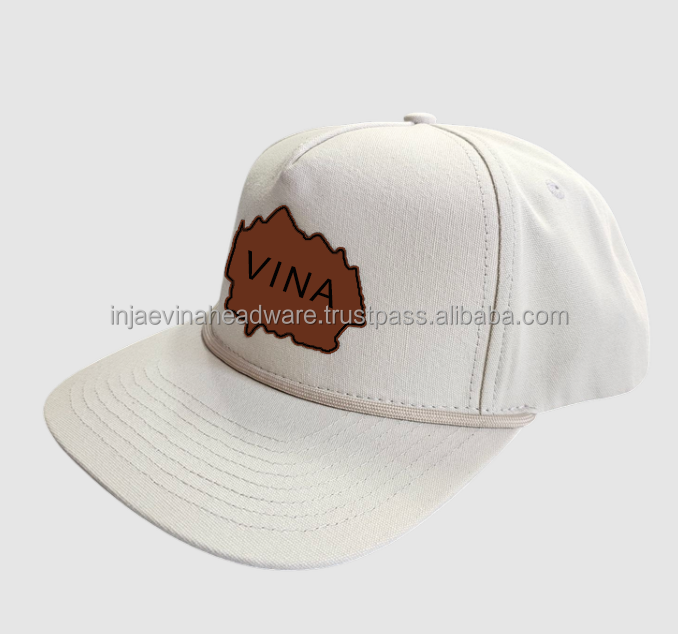 ใหม่หมวกแก๊ปโลโก้หนัง PU 5แผงสำหรับเล่นกอล์ฟหมวกแก๊ปปีกโค้งผ้าโพลี/ ผ้าฝ้ายผสม3D กีฬาปักโลโก้เชือกหมวกสแนปแบค