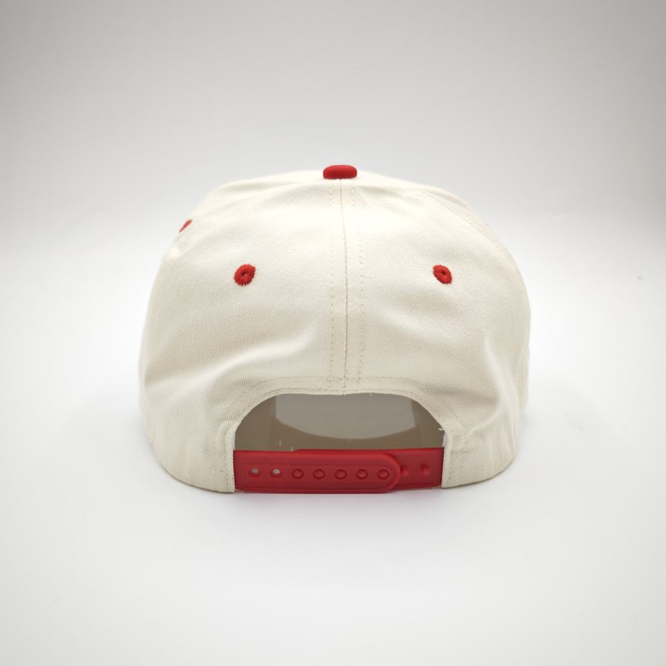 หมวกเบสบอลทรงวินเทจแบบมีโครงสร้าง 5 ชิ้น ทำจากผ้า Oxford Dobby ปักโลโก้แบบสองสี ปรับขนาดได้