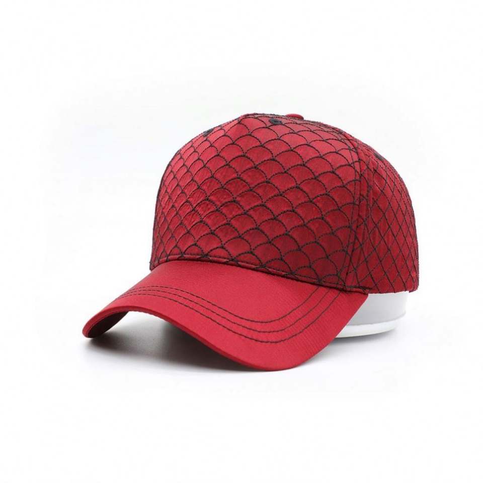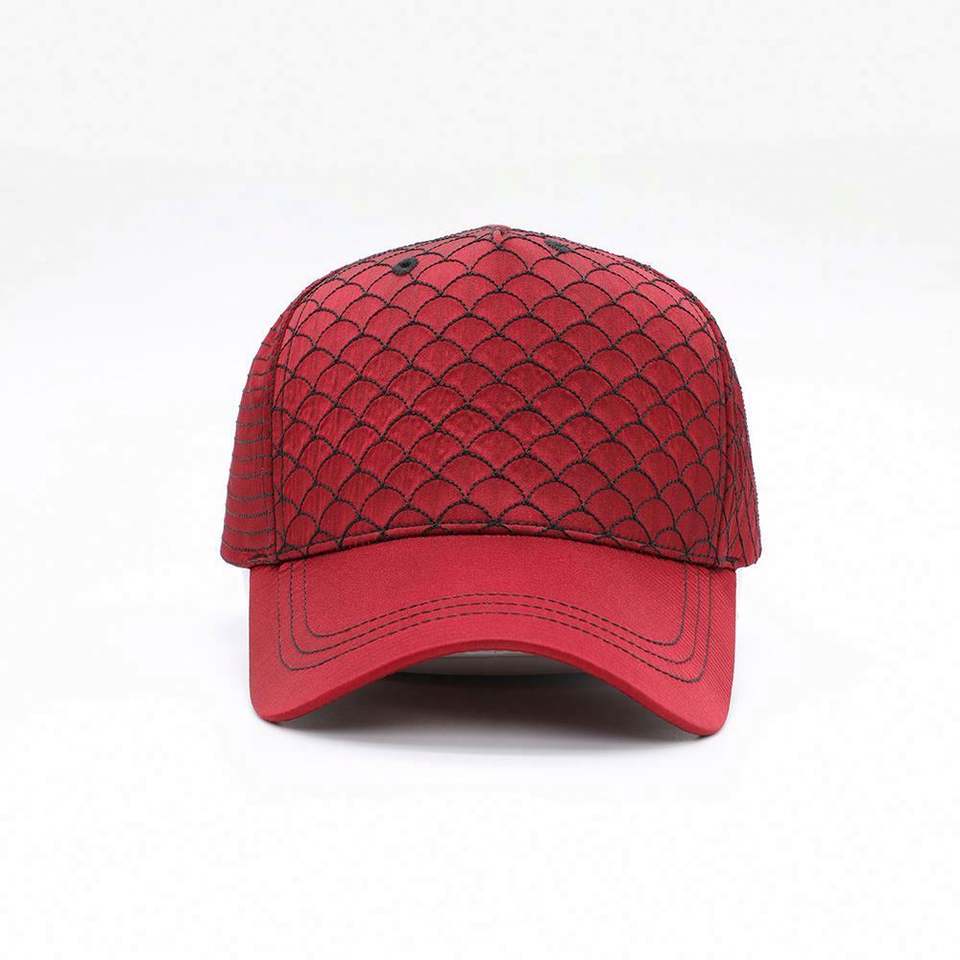 หมวกเบสบอลผู้หญิงแบบ 5 ชิ้นส่วน แต่งลายเกล็ดปลา ผ้าซาตินสีแดงบุซับใน สไตล์ฮิปฮอป แฟชั่นทันสมัย