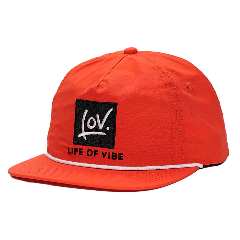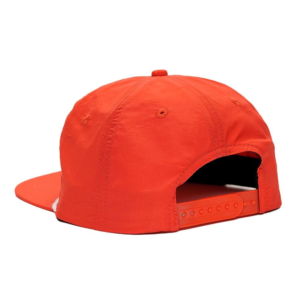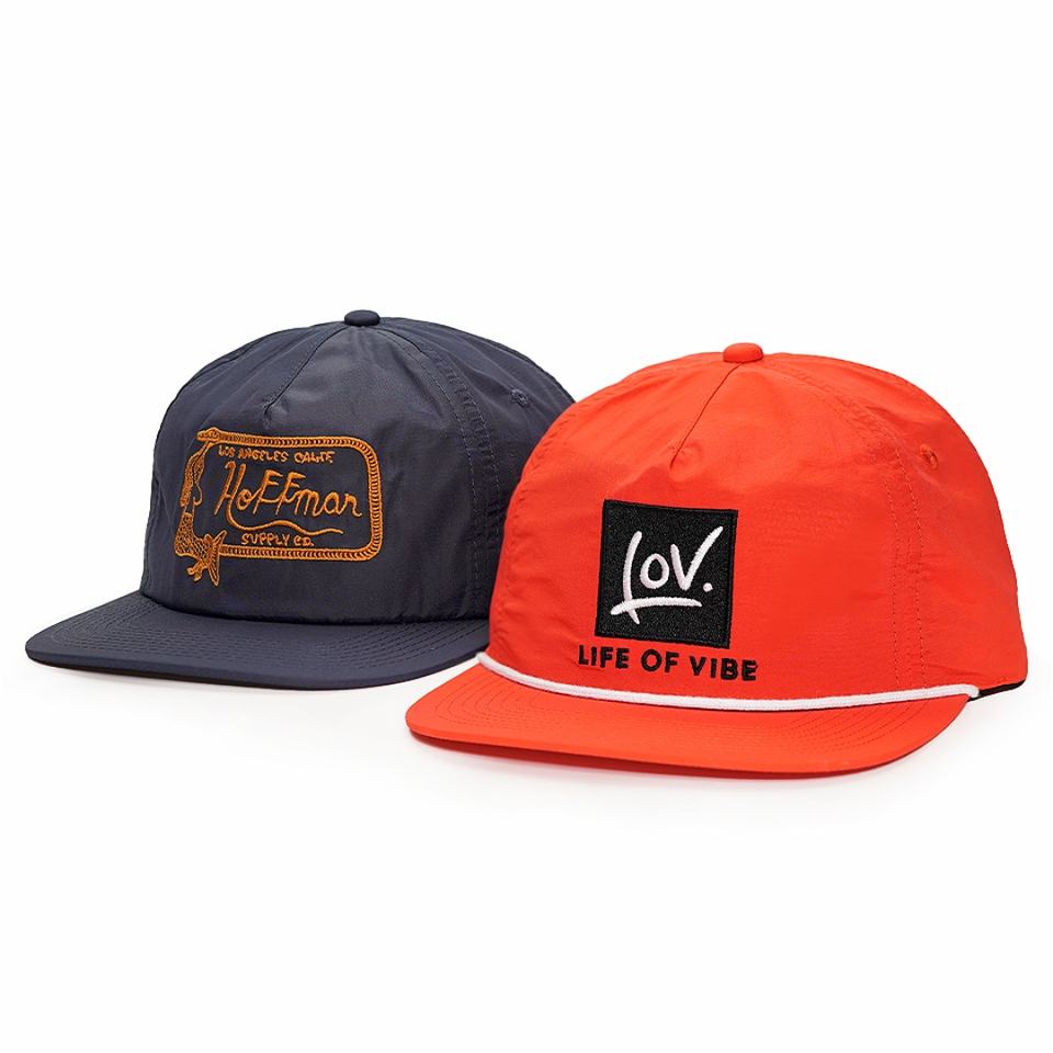 หมวกแก๊ปแบบ 5 แผง ผ้าไนลอน ปักโลโก้สีแดง ทรงไม่แข็ง