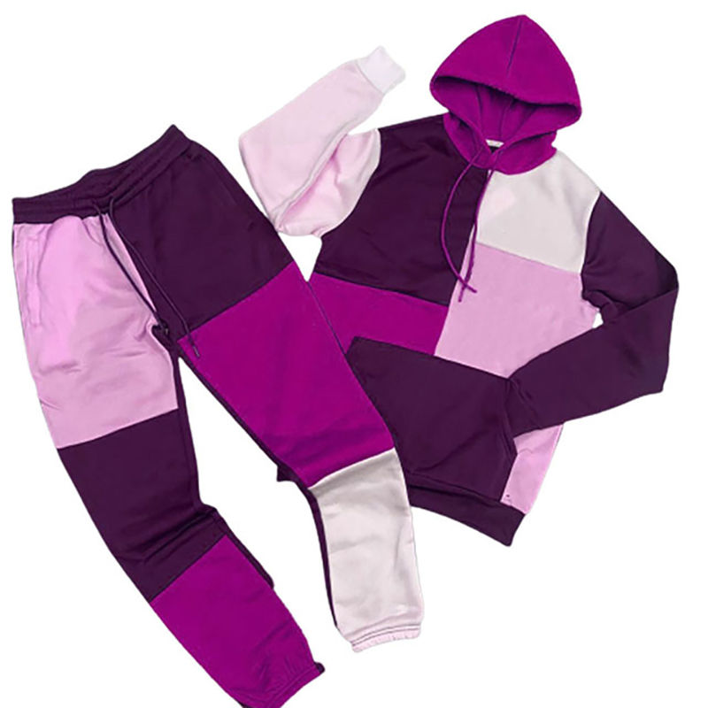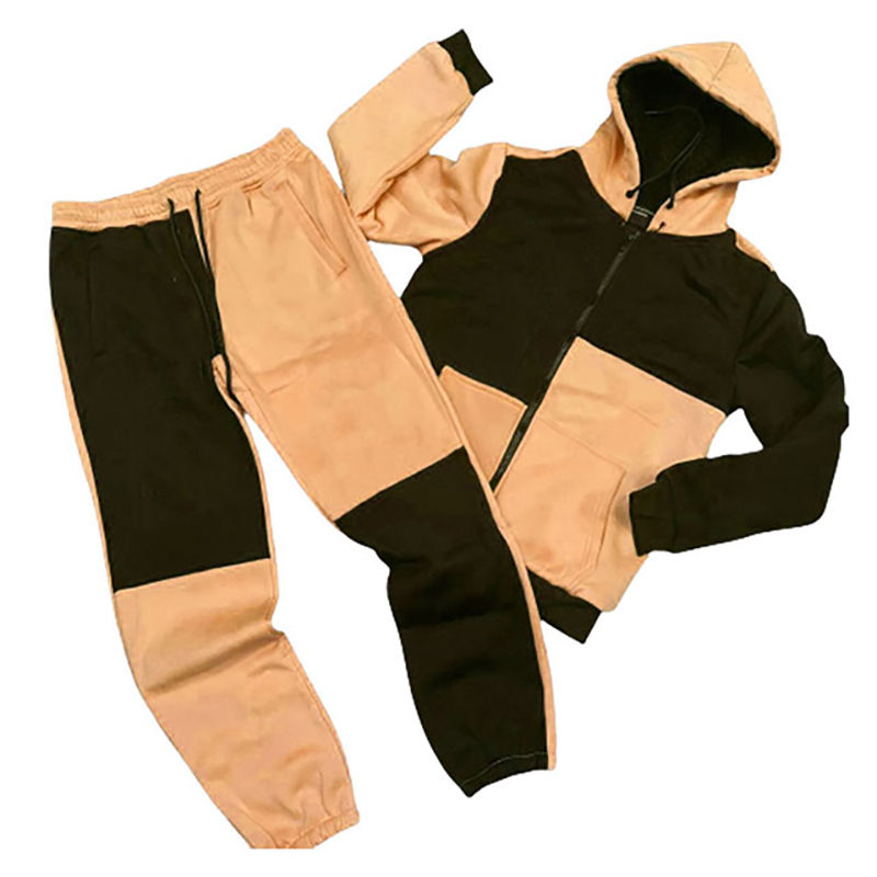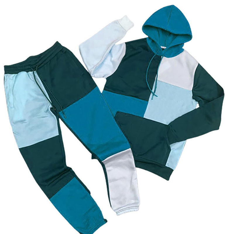 ชุดวอร์มออกกำลังกายแบบสั่งทำพิเศษ รุ่น 500 สำหรับผู้ชาย ตัดเย็บอย่างดี ผ้าหนา ตกแต่งด้วยผ้าแบบหลายชิ้น ชุดเสื้อฮู้ดและกางเกงวอร์ม