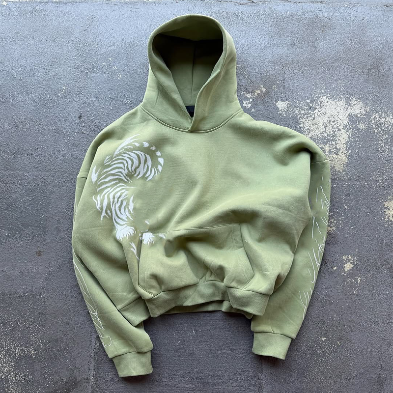เสื้อมีฮู้ดผ้าฟรองซ์เทอร์รี่โอเวอร์ไซส์ลายพิมพ์ลายตามสั่งไม่ซีดจางมีกรดมีซิปไซส์ใหญ่พิเศษออกแบบได้ตาม500Gsm