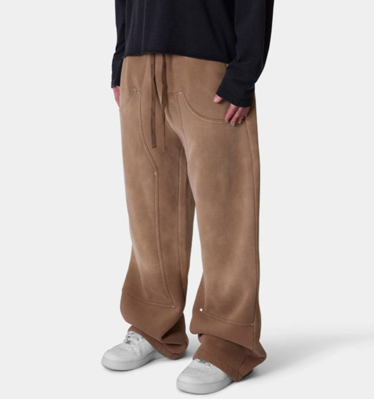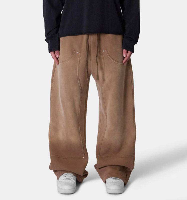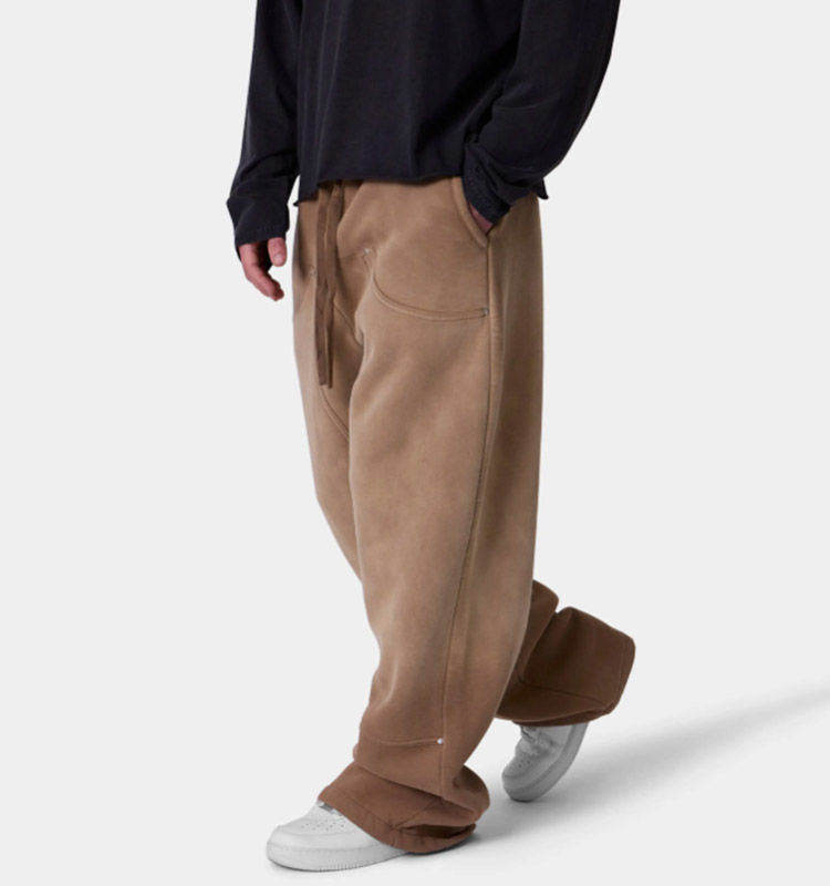 Custom 500g French Terry Cotton Oversized Heavyweight Knee Acid Wash Stoned Wash Wide Leg Men Flare Baggy Jogger Sweats Pants
