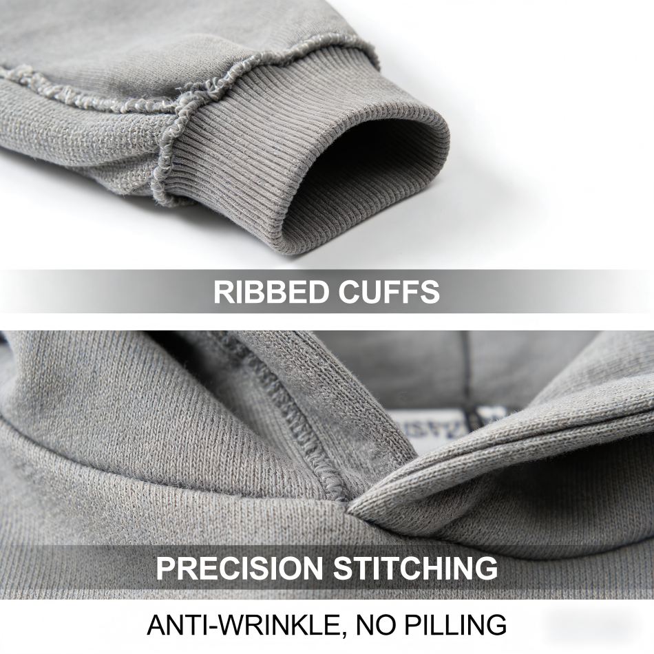 เสื้อฮู้ดผู้ชายผ้าฝ้าย 100% หนัก 550 กรัม แบบสวมหัวสำหรับฤดูหนาว ทรงโอเวอร์ไซส์ ปักลาย 3 มิติ ผ้าฟลีซกันยับ พิมพ์ลายสกรีน
