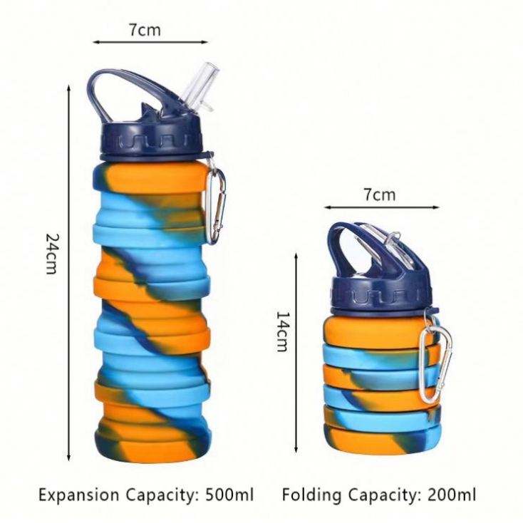 ขวดน้ำซิลิโคนพับได้ขนาด 500 มล. ป้องกันการรั่วซึม พร้อมหลอดดูด เก็บความเย็นได้ เหมาะสำหรับเด็ก พกพาสะดวก ใช้สำหรับกีฬา หรือเป็นของแจก