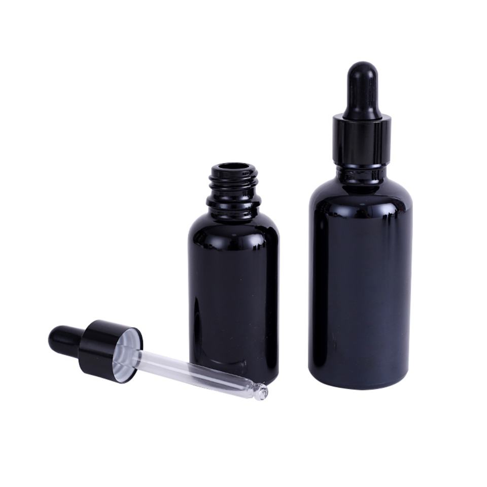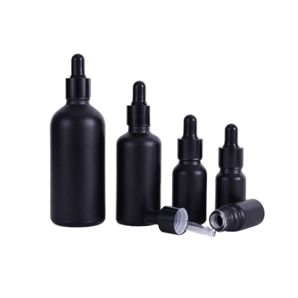 ขวดแก้วหยดขนาด 5 มล. - 50 มล. แบบกำหนดเอง พร้อมฝาสีดำ ขวดแก้วฝ้าสำหรับน้ำมันหอมระเหย ขวดปิเปตเติมได้