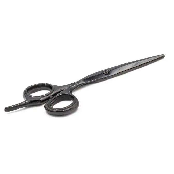6.5กำหนดเอง "กรรไกรตัดผมสีดำเคลือบพร้อมด้ามจับแฟนซีใบมีดสแตนเลสคมมาพร้อมกับเคสหนัง