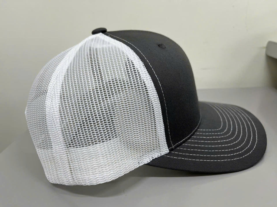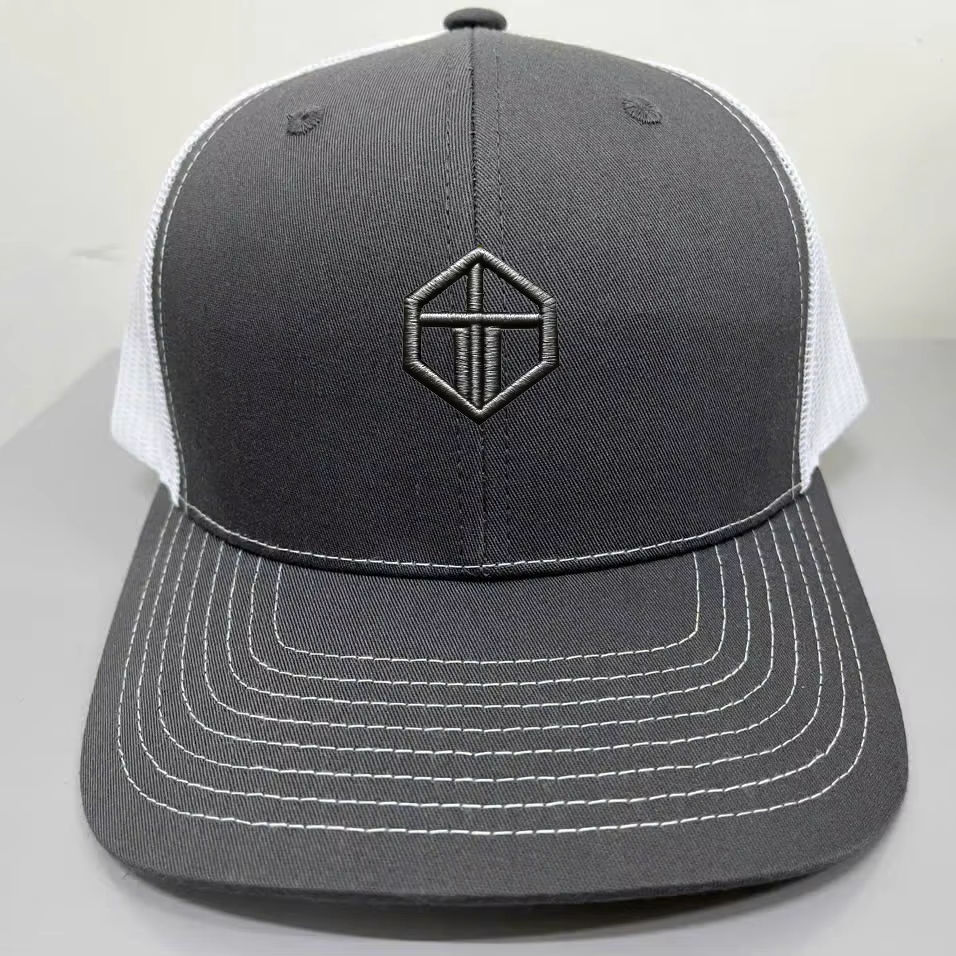หมวกแก๊ปตาข่ายสีเทาเข้ม 6 แผง ระบายอากาศ กันน้ำ ปรับขนาดได้ ปักโลโก้ตามสั่ง สำหรับกิจกรรมกลางแจ้ง