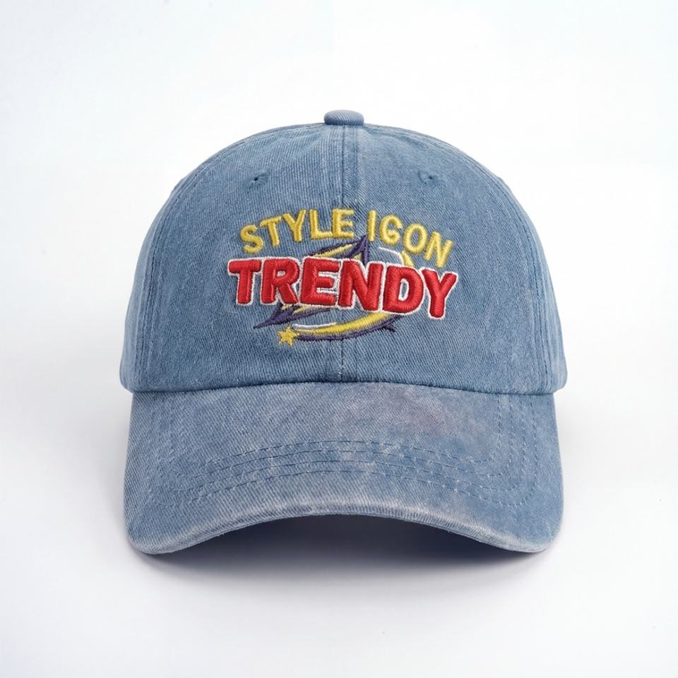 หมวกเบสบอลสีฟ้าอ่อนปักโลโก้ 6 แผงแบบกำหนดเอง ผ้าฝ้ายฟอกทรงไม่แข็งแบบ Dad Hat