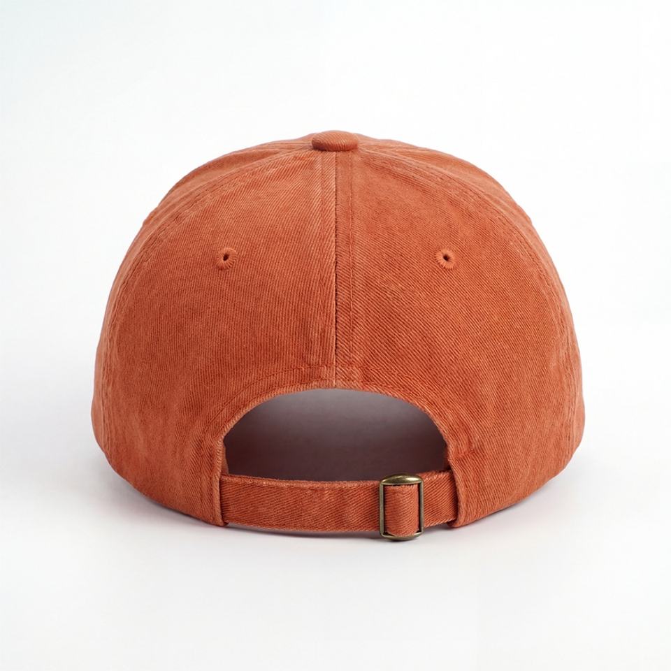 หมวกเบสบอลปักโลโก้ 6 แผง สีส้ม แบบเรียบ ผ้าฝ้ายฟอก ทรงไม่แข็ง แบบ Dad Hat