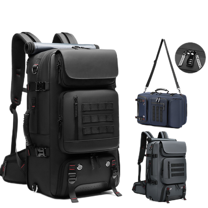 กระเป๋าเป้เดินป่ากลางแจ้งแบบยุทธวิธีขนาด 60 ลิตร กันน้ำ ผลิตจากวัสดุ PU สำหรับเดินทาง ผู้ชาย ป้องกันการโจรกรรม มีช่องใส่คอมพิวเตอร์และรองเท้า พร้อมพอร์ต USB