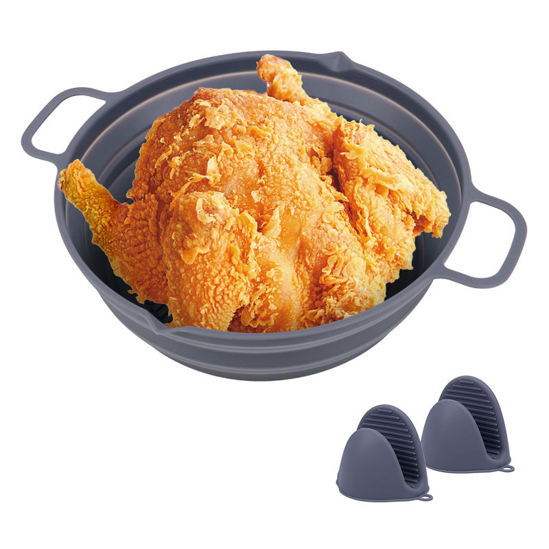 กระทะอบไมโครเวฟ7.5นิ้ว19ซม. ใช้ซ้ำได้ถาดทอดซิลิโคนพร้อมถุงมือ