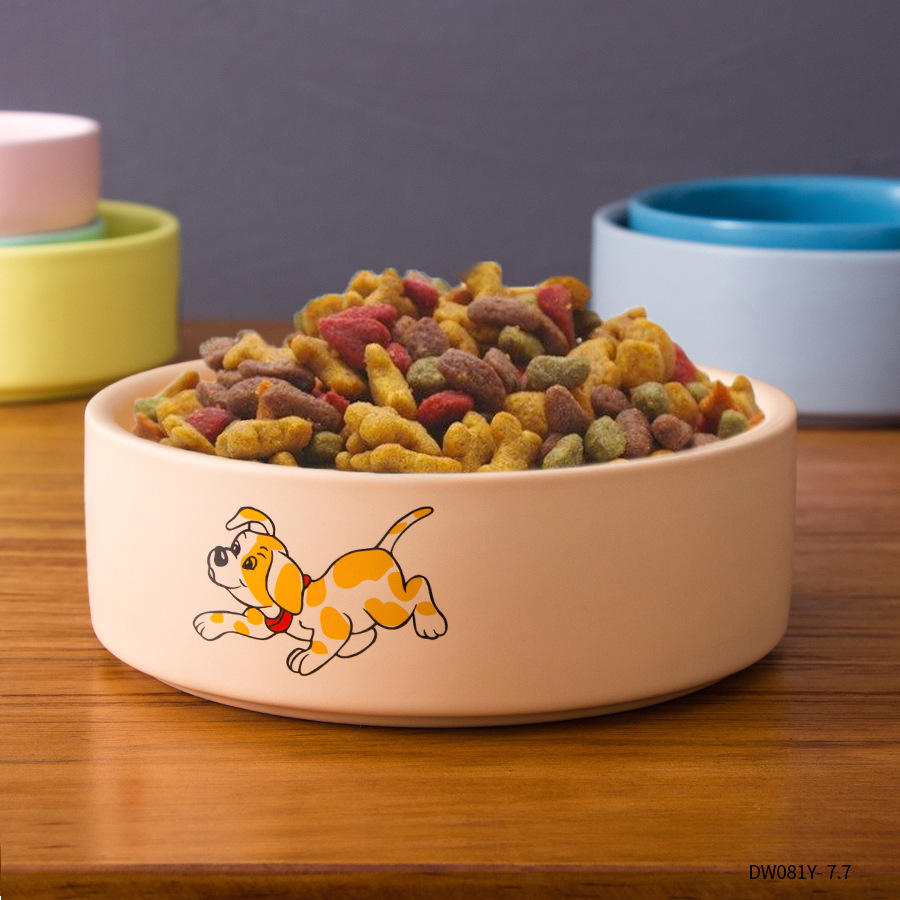 ชามเซรามิคลายการ์ตูนขนาด 7 นิ้ว สำหรับสัตว์เลี้ยง ขอบโค้งหนา สำหรับแมวและสุนัข ทำความสะอาดง่าย มีตัวเลือกเป็นของขวัญ