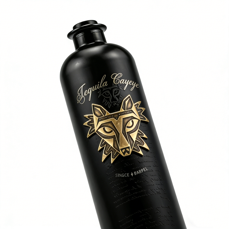 ขวดวิสกี้ เตกีลา วอดก้า ขนาด 750 มล. 700 มล. แบบกำหนดเอง ขวดแก้วโทนิค จิน สีดำด้าน พร้อมป้ายโลหะ