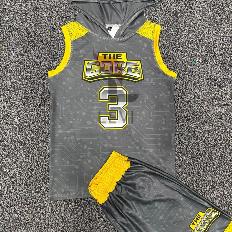 ชุดฟุตบอล 7 คนแบบกำหนดเองสำหรับผู้ใหญ่ ไซส์พลัส พิมพ์ลายดิจิทัล โลโก้ด้านหน้า เสื้อฮู้ดดี้และกางเกงขาสั้นชุดกีฬา